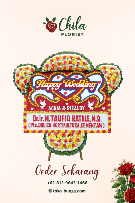 Papan pernikahan, duka cita, ucapan selamat/HUT, buket, krans & lainnya.